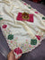 A white Pure Crystal Saree Adorned with butta Bandhanj Work & c pallu cut work Borders – Perfect for a Dreamy, Elegant Look.”